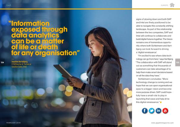 signs of slowing down and both SAP and Intel are finely positioned to be able to navigate this constantly shifting landscape . As part of the relationship between the two companies , SAP and Intel will continue to collaborate and build digital futures together . The future remains one of tremendous opportunity where both Schleimann and Aertbjerg can look forward to driving a ‘ digital renaissance ’.