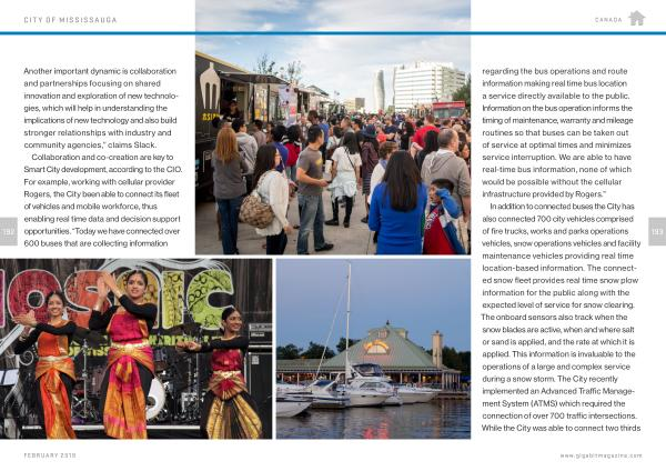 In addition to connected buses the City has also connected 700 city vehicles comprised of fire trucks , works and parks operations vehicles , snow operations vehicles and facility maintenance vehicles providing real time location-based information . The connected snow fleet provides real time snow plow information for the public along with the expected level of service for snow clearing . The onboard sensors also track when the snow blades are active , when and where salt or sand is applied , and the rate at which it is applied . This information is invaluable to the operations of a large and complex service during a snow storm . The City recently implemented an Advanced Traffic Management System ( ATMS ) which required the connection of over 700 traffic intersections . While the City was able to connect two thirds