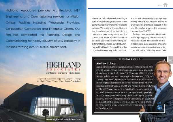 A data center , IT , private equity and real estate executive with over 20 years of complex transactional experience and multidisciplinary senior leadership , Chief Executive Officer Andrew Schaap , is dedicated to accelerating the development of Aligned Energy ’ s business objectives as demand for its adaptive data center approach continues to exceed expectations . Andrew is responsible for business growth and promoting the availability of Aligned Energy ’ s data center and build-to-scale solutions to cloud , telecom , enterprise and managed service providers . With a thorough understanding of the evolving data center market , Andrew is responsible for cultivating an ecosystem of innovation that advances Aligned Energy ’ s commitment to reducing the social , economic and environmental impact of the digital era .