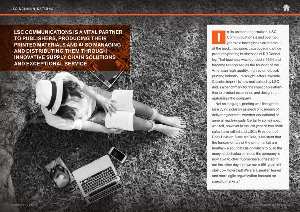 LSC COMMUNICATIONS IS A VITAL PARTNER TO PUBLISHERS , PRODUCING THEIR PRINTED MATERIALS AND ALSO MANAGING AND DISTRIBUTING THEM THROUGH INNOVATIVE SUPPLY CHAIN SOLUTIONS AND EXCEPTIONAL SERVICE