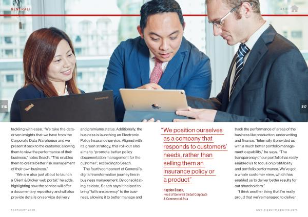 The fourth component of Generali ’ s digital transformation journey lies in business management . By consolidating its data , Seach says it helped to bring “ full transparency ” to the business , allowing it to better manage and