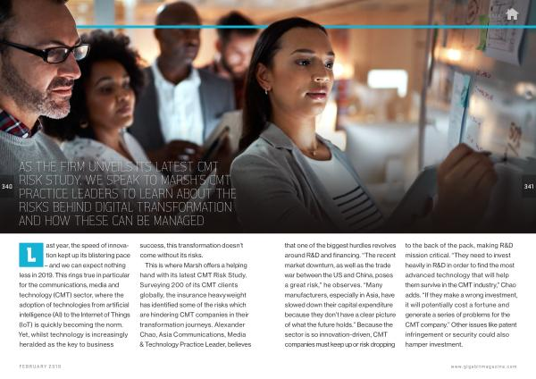 AS THE FIRM UNVEILS ITS LATEST CMT RISK STUDY , WE SPEAK TO MARSH ’ S CMT PRACTICE LEADERS TO LEARN ABOUT THE RISKS BEHIND DIGITAL TRANSFORMATION AND HOW THESE CAN BE MANAGED