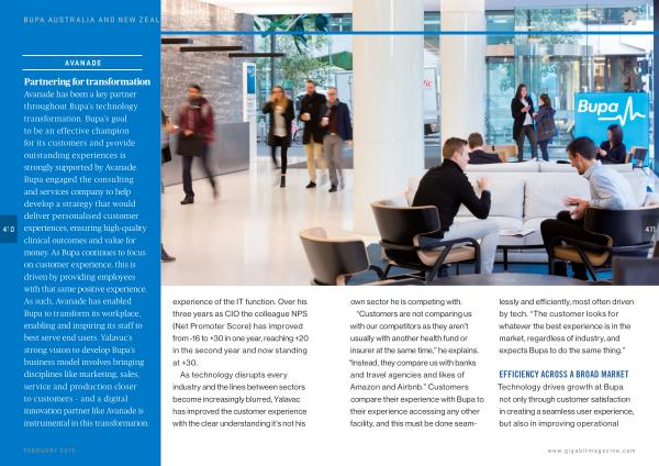 Avanade has been a key partner throughout Bupa ’ s technology transformation . Bupa ’ s goal to be an effective champion for its customers and provide outstanding experiences is strongly supported by Avanade . Bupa engaged the consulting and services company to help develop a strategy that would deliver personalised customer experiences , ensuring high-quality clinical outcomes and value for money . As Bupa continues to focus on customer experience , this is driven by providing employees with that same positive experience . As such , Avanade has enabled Bupa to transform its workplace , enabling and inspiring its staff to best serve end users . Yalavac ’ s strong vision to develop Bupa ’ s business model involves bringing disciplines like marketing , sales , service and production closer to customers – and a digital innovation partner like Avanade is instrumental in this transformation .