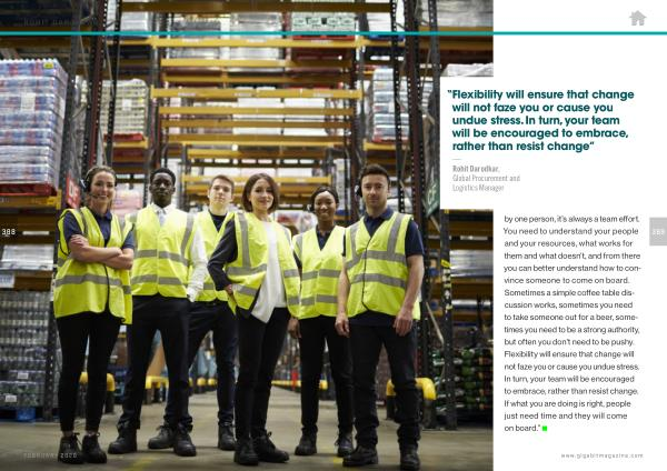 — Rohit Darodkar , Global Procurement and Logistics Manager by one person , it ’ s always a team effort . You need to understand your people and your resources , what works for them and what doesn ’ t , and from there you can better understand how to convince someone to come on board . Sometimes a simple coffee table discussion works , sometimes you need to take someone out for a beer , sometimes you need to be a strong authority , but often you don ’ t need to be pushy . Flexibility will ensure that change will not faze you or cause you undue stress . In turn , your team will be encouraged to embrace , rather than resist change . If what you are doing is right , people just need time and they will come on board .”