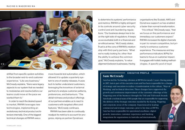 In order to reach the desired speed to market , RWWA leverages new technologies , implementing an evolutionary technical product architecture internally . One of the biggest technical changes at RWWA was a move towards test automation , which allowed it to update a quarterly system to one of weekly releases . It uses tech to better understand customers , leveraging the knowhow of external partners to analyse customer patterns , preferences , and behaviours . “ The detail richness and product offerings of our partners enables us to react to customers with targeted offers and features ,” McCready continues .