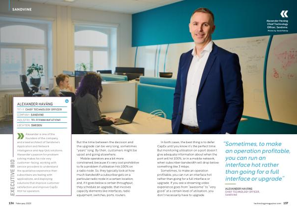 ALEXANDER HAVÄNG CHIEF TECHNOLOGY OFFICER , SANDVINE technologymagazine . com 137