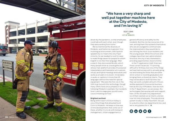 Brightest and best Being within reach of Silicon Valley is one of the things that attracted Scott Conn to Modesto . He keeps a close eye on the developments that come out of there , whether it is to do with transport management , citizen engagement or general efficiency and safety for the residents . But the city has resources of its own , among them the residents themselves who are encouraged to communicate the improvements they would like to see . Among the most vocal residents are the young people . While the schools and colleges have their own administration structure , the city is very interested in providing opportunities close to home .