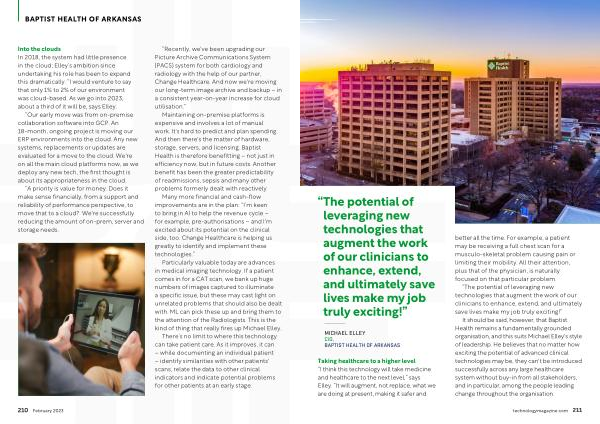 Maintaining on-premise platforms is expensive and involves a lot of manual work . It ' s hard to predict and plan spending . And then there ' s the matter of hardware , storage , servers , and licensing . Baptist Health is therefore benefitting – not just in efficiency now , but in future costs . Another benefit has been the greater predictability of readmissions , sepsis and many other problems formerly dealt with reactively . Many more financial and cash-flow improvements are in the plan : “ I ’ m keen to bring in AI to help the revenue cycle – for example , pre-authorisations – and I ' m excited about its potential on the clinical side , too . Change Healthcare is helping us greatly to identify and implement these technologies .”