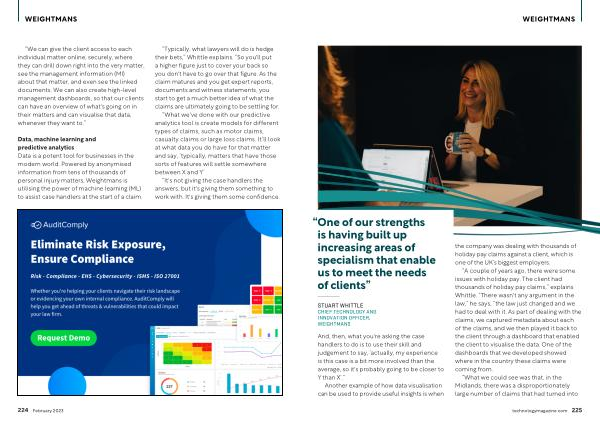 “ Typically , what lawyers will do is hedge their bets ,” Whittle explains . “ So you ' ll put a higher figure just to cover your back so you don ' t have to go over that figure . As the claim matures and you get expert reports , documents and witness statements , you start to get a much better idea of what the claims are ultimately going to be settling for . “ What we ' ve done with our predictive analytics tool is create models for different types of claims , such as motor claims , casualty claims or large loss claims . It ’ ll look at what data you do have for that matter and say , ‘ typically , matters that have those sorts of features will settle somewhere between X and Y ’.