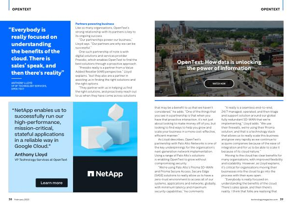 As Lloyd describes , OpenText ’ s partnership with Palo Alto Networks is one of the key underpinnings for the organisation ’ s next-generation network implementation . Using a range of Palo Alto ’ s solutions is enabling OpenText to grow without compromising security .