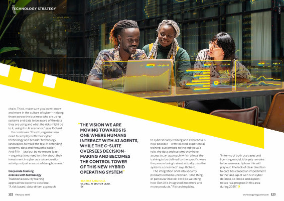 “ In terms of both use cases and licensing model , it largely remains to be seen exactly how this will play out . The lack of clear direction to date has caused an impediment to the take-up of Gen AI in cyber defence , so I hope and expect to see real progress in this area during 2025 .” technologymagazine . com 123