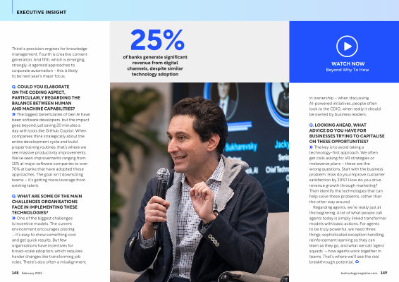 Regarding agents , we ’ re really just at the beginning . A lot of what people call agents today is simply linked transformer models with basic actions . For agents to be truly powerful , we need three things : sophisticated exception handling , reinforcement learning so they can learn as they go , and what we call ‘ agent squads ’ – how agents work together in teams . That ’ s where we ’ ll see the real breakthrough potential .