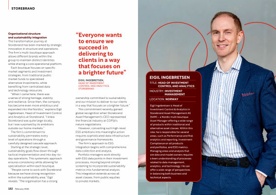 “ People come to work with Storebrand because we have strong recognition within the sustainability area ,” Eigil reveals . “ The organisation has a strong