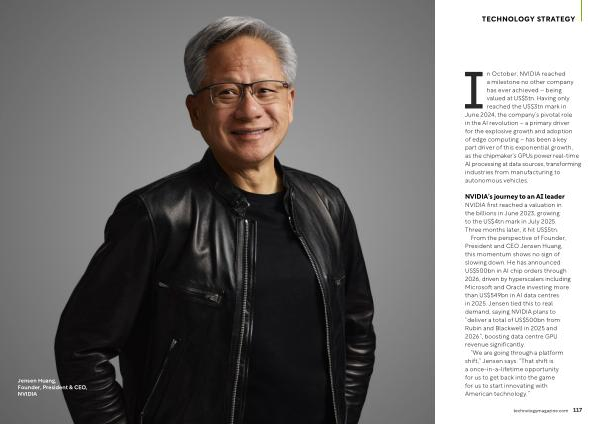 I n October, NVIDIA reached a milestone no other company has ever achieved – being valued at US $ 5tn. Having only reached the US $ 3tn mark in June 2024, the company’ s pivotal role in the AI revolution – a primary driver for the explosive growth and adoption of edge computing – has been a key part driver of this exponential growth, as the chipmaker’ s GPUs power real-time AI processing at data sources, transforming industries from manufacturing to autonomous vehicles.