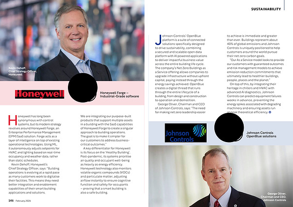 Johnson Controls’ OpenBlue platform is a suite of connected solutions specifically designed to drive sustainability, combining a secured and scalable open data platform with AI powered applications to deliver impactful business value across the entire building life cycle. The company’ s Net Zero Buildings as a Service offering allows companies to upgrade infrastructure without upfront capital, paying instead through the energy savings achieved. OpenBlue creates a digital thread that runs through the entire lifecycle of a building, from design and construction to operation and demolition.