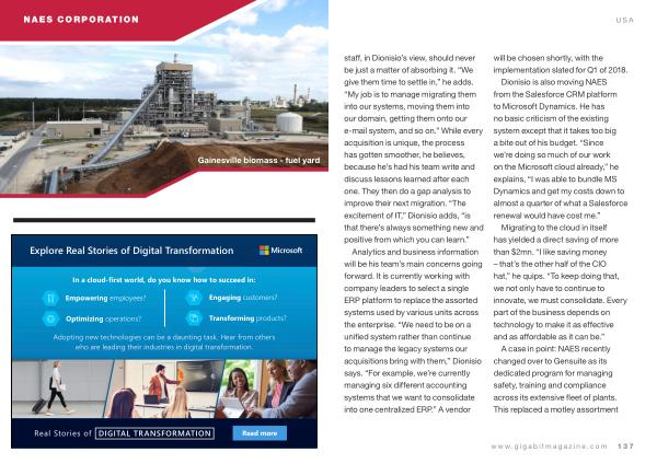 Dionisio is also moving NAES from the Salesforce CRM platform to Microsoft Dynamics . He has no basic criticism of the existing system except that it takes too big a bite out of his budget . “ Since we ’ re doing so much of our work on the Microsoft cloud already ,” he explains , “ I was able to bundle MS Dynamics and get my costs down to almost a quarter of what a Salesforce renewal would have cost me .”