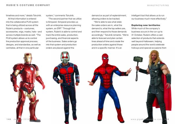 timelines and more ,” details Tsirulnik . All that information is entered into the collaborative PLM system that is being utilized across all the Rubie ’ s products – costumes , accessories , wigs , masks , hats – and across multiple brands as well . “ The PLM system allows us to control the production approval process , designs , and standardize , as well as centralize , all that in one particular system ,” comments Tsirulnik .