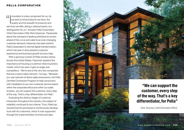 Innovation is a key component for us . As we look at what products we have , the quality and the breadth of products and services we offer , being a national brand , is a distinguisher for us ,” remarks Pella Corporation Chief Information Offer Rick Hassman . Passionate about the company ’ s leading ambitions to remain ahead of the curve and cater to an ever-changing customer demand , Hassman has been behind Pella Corporation ’ s internal digital transformation , which has seen it drive positive customer experience and business growth at every step .