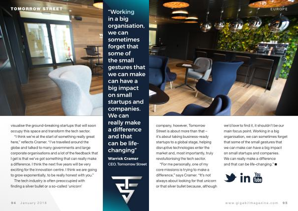 EUROPE company , however , Tomorrow Street is about more than that – it ’ s about taking business-ready startups to a global stage , helping disruptive technologies enter the market and , most importantly , truly revolutionising the tech sector .