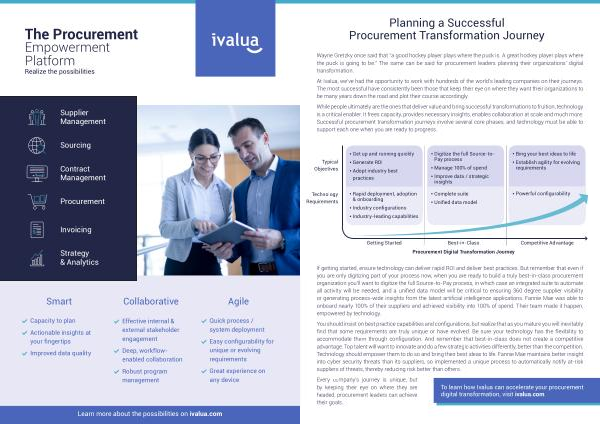 To learn how Ivalua can accelerate your procurement digital transformation , visit ivalua . com