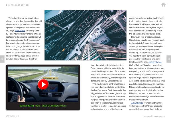 “ The ultimate goal for smart cities should be to utilise the insights that will allow for the improvement and development of the physical world around us ,” says Wael Elrifai , VP of Big Data , IOT and AI at Hitachi Vantara . “ Unlocking today ’ s data centre capabilities will be a game changer for this success .” For smart cities to function successfully , cutting edge data infrastructure is a necessity . “ It ’ s no secret that in order for smart cities to become fully integrated they need a data-centric solution that will remove the strain