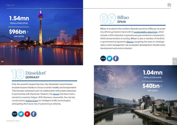 Bilbao is located in the northern Spanish province of Biscay . Its smart city efforts go hand in hand with its sustainability objectives , which include a 30 % reduction in greenhouse gas emissions compared to 2005 and promotion of cycling . Bilbao is also a member of the EU ’ s e-government programme WeLive , targeting the axes of : strategic vision , smart management , city ecosystem development , infrastructure development and social cohesion .