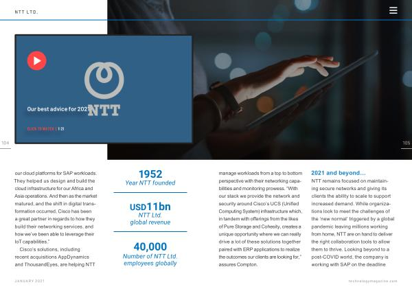 NTT remains focused on maintaining secure networks and giving its clients the ability to scale to support increased demand . While organizations look to meet the challenges of the ‘ new normal ’ triggered by a global pandemic leaving millions working from home , NTT are on hand to deliver the right collaboration tools to allow them to thrive . Looking beyond to a post-COVID world , the company is working with SAP on the deadline