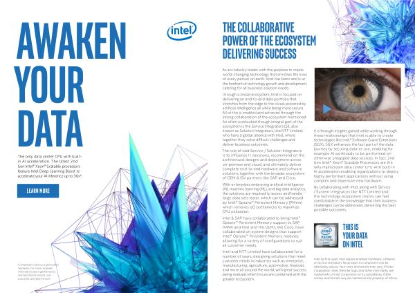 Through a broad ecosystem , Intel is focused on delivering an end-to-end data portfolio that stretches from the edge to the cloud , powered by artificial intelligence all while being more secure . All of this is enabled and achieved through the strong collaboration of the ecosystem mentioned . An often overlooked though integral part of the ecosystem is the Service Integrators ( SI ), also known as Solution Integrators , like NTT Limited , who have a global alliance with Intel , where together they solve difficult challenges and deliver business outcomes .