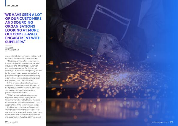 “ Globalisation has allowed companies to establish good collaborations between industries and different regions , as well as a trading ecosystem . But I think the challenges that we are seeing today are due to the supply chain issues — as well as the pandemic and geopolitical crises — forcing organizations to look at establishing local ecosystems ,” says Gopalkrishnan .