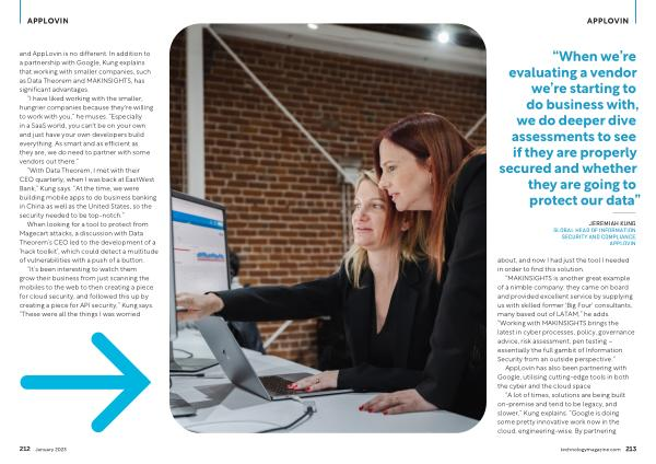 and AppLovin is no different . In addition to a partnership with Google , Kung explains that working with smaller companies , such as Data Theorem and MAKINSIGHTS , has significant advantages .