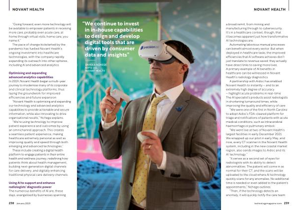 “ Novant Health is optimising and expanding our technology and advanced analytics capabilities to provide actionable and secure information , while also innovating to drive organisational results ,” Nchege explains .