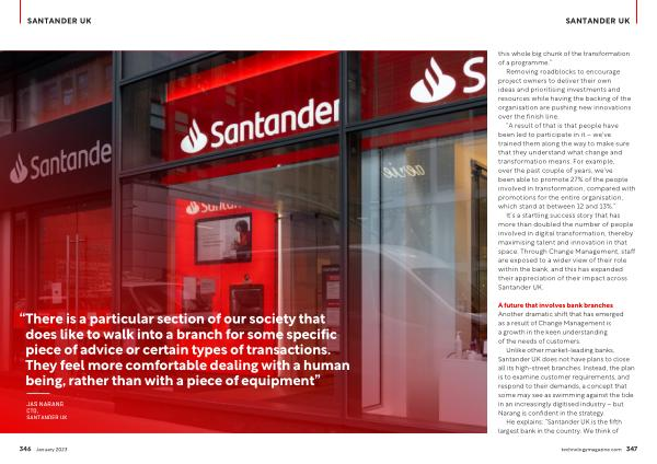 It ’ s a startling success story that has more than doubled the number of people involved in digital transformation , thereby maximising talent and innovation in that space . Through Change Management , staff are exposed to a wider view of their role within the bank , and this has expanded their appreciation of their impact across Santander UK . c an