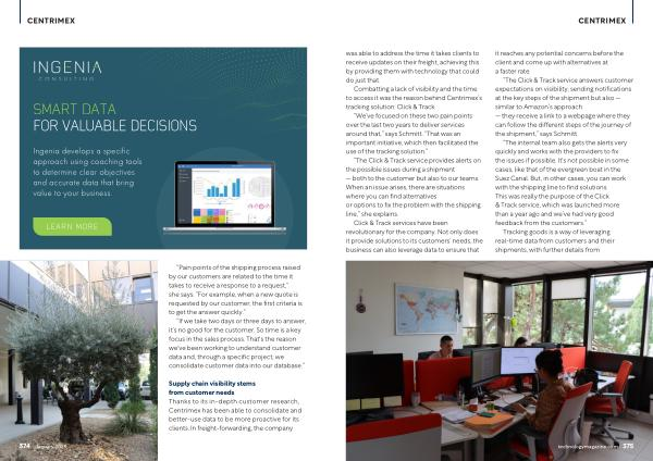 Supply chain visibility stems from customer needs Thanks to its in-depth customer research , Centrimex has been able to consolidate and better-use data to be more proactive for its clients . In freight-forwarding , the company