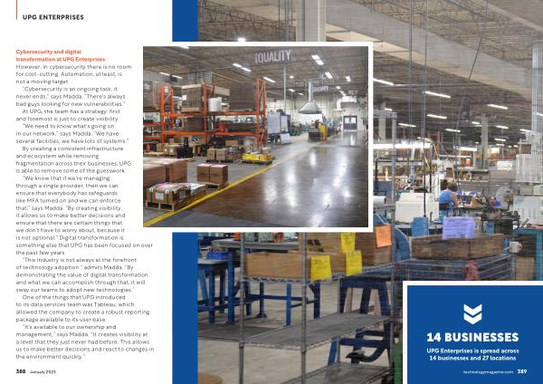 “ We know that if we ' re managing through a single provider , then we can ensure that everybody has safeguards like MFA turned on and we can enforce that ,” says Madda . “ By creating visibility , it allows us to make better decisions and ensure that there are certain things that we don ’ t have to worry about , because it is not optional .” Digital transformation is something else that UPG has been focused on over the past few years .