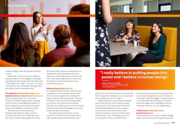 The adoption of cloud technologies and implementation of security and compliance As a trusted provider of connectivity solutions , VodafoneZiggo has an ongoing commitment to leveraging the power of technology to positively impact people ’ s lives and strengthen society as a whole .