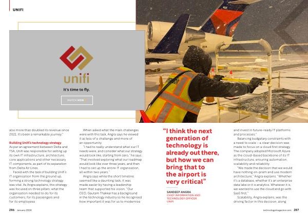 SANDEEP ANGRA CHIEF INFORMATION AND TECHNOLOGY OFFICER , UNIFI and invest in future-ready IT platforms and processes .”