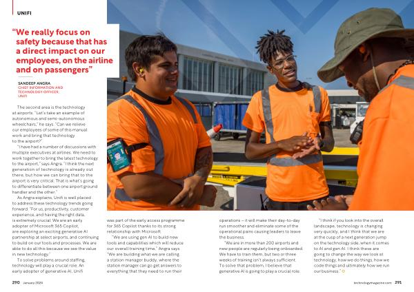 As Angra explains , Unifi is well placed to address these technology trends going forward . “ For us , productivity , customer experience , and having the right data , is extremely crucial . We are an early adopter of Microsoft 365 Copilot , are exploring an exciting generative AI partnership at select airports , and continuing to build on our tools and processes . We are able to do all this because we see the value in new technology .”