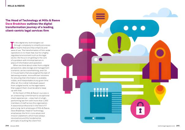 The Head of Technology at Mills & Reeve Dave Bradshaw outlines the digital transformation journey of a leading , client-centric legal services firm