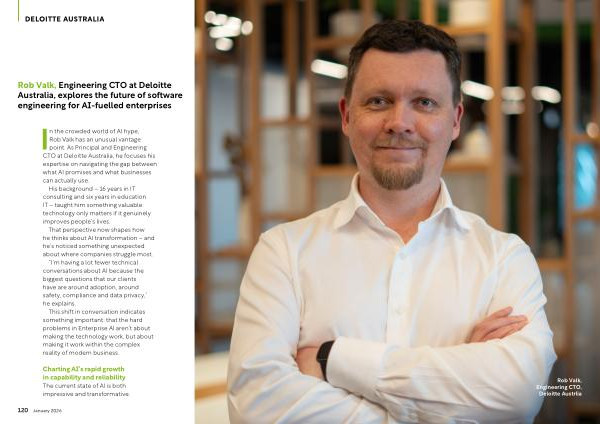 In the crowded world of AI hype, Rob Valk has an unusual vantage point. As Principal and Engineering CTO at Deloitte Australia, he focuses his expertise on navigating the gap between what AI promises and what businesses can actually use.