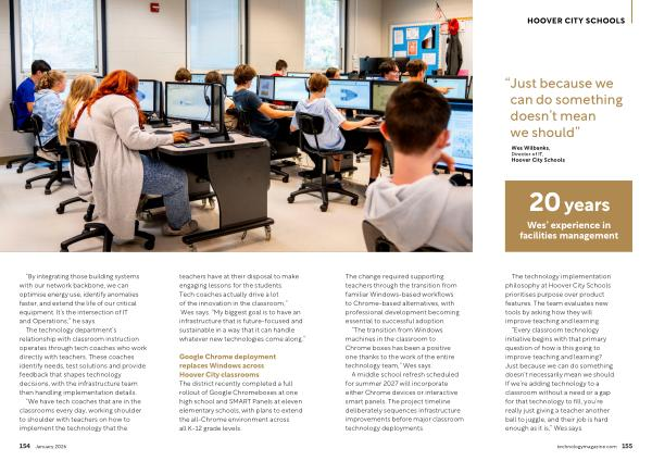 Google Chrome deployment replaces Windows across Hoover City classrooms The district recently completed a full rollout of Google Chromeboxes at one high school and SMART Panels at eleven elementary schools, with plans to extend the all-Chrome environment across all K-12 grade levels.