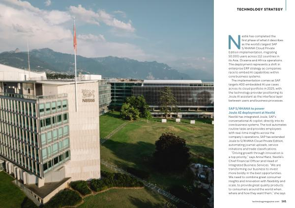 SAP S / 4HANA to power Joule AI deployment at Nestlé Nestlé has integrated Joule, SAP’ s conversational AI copilot, directly into its core business systems. The tool automates routine tasks and provides employees with real-time insights across the company’ s operations. SAP has extended Joule to S / 4HANA Cloud Private Edition, automating journal uploads, service initiations and trade classifications.