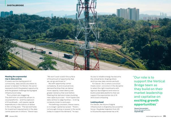 Meeting the exponential rise in data centres If towers are the starting point of connectivity, data centres are where its power is realised. For Steven, the sector represents both the greatest opportunity and the greatest challenge facing digital infrastructure today.