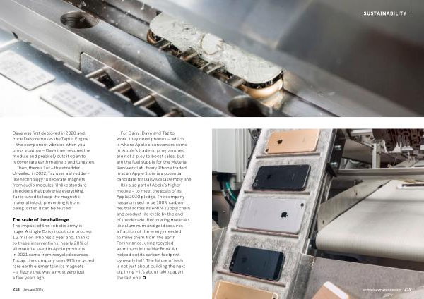 The scale of the challenge The impact of this robotic army is huge. A single Daisy robot can process 1.2 million iPhones a year and, thanks to these interventions, nearly 20 % of all material used in Apple products in 2021 came from recycled sources. Today, the company uses 99 % recycled rare earth elements in its magnets – a figure that was almost zero just a few years ago.
