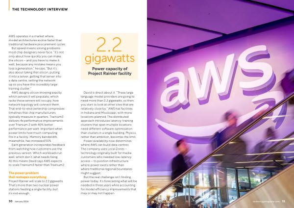 AWS operates in a market where model architectures evolve faster than traditional hardware procurement cycles. But speed means solving problems most chip designers never face.“ It’ s not only about how quickly you can make the silicon – and you have to make it well, because any mistake means you lose a generation,” he says.“ But it’ s also about taking that silicon, putting it into a server, getting that server into a data centre, setting the network up so you have this incredibly large training cluster.”