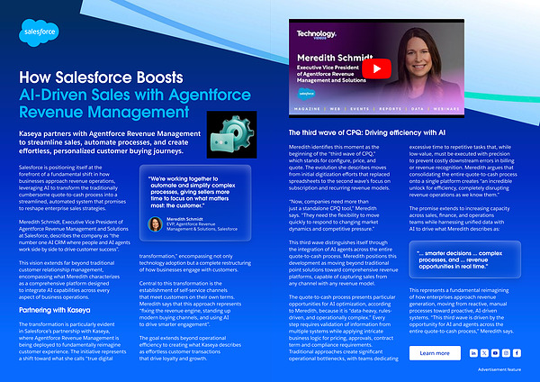 The quote-to-cash process presents particular opportunities for AI optimization, according to Meredith, because it is“ data-heavy, rulesdriven, and operationally complex.” Every step requires validation of information from multiple systems while applying intricate business logic for pricing, approvals, contract term and compliance requirements. Traditional approaches create significant operational bottlenecks, with teams dedicating excessive time to repetitive tasks that, while low-value, must be executed with precision to prevent costly downstream errors in billing or revenue recognition. Meredith argues that consolidating the entire quote-to-cash process onto a single platform creates“ an incredible unlock for efficiency, completely disrupting revenue operations as we know them.”