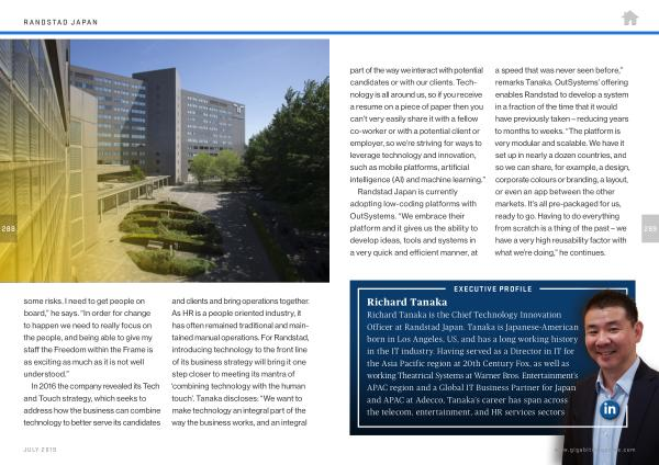In 2016 the company revealed its Tech and Touch strategy , which seeks to address how the business can combine technology to better serve its candidates and clients and bring operations together . As HR is a people oriented industry , it has often remained traditional and maintained manual operations . For Randstad , introducing technology to the front line of its business strategy will bring it one step closer to meeting its mantra of ‘ combining technology with the human touch ’. Tanaka discloses : “ We want to make technology an integral part of the way the business works , and an integral