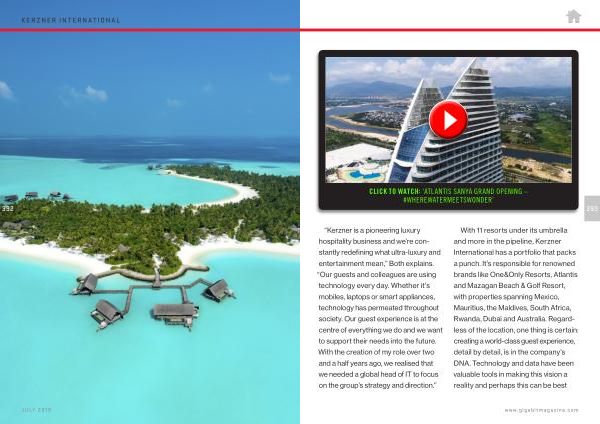 With 11 resorts under its umbrella and more in the pipeline , Kerzner International has a portfolio that packs a punch . It ’ s responsible for renowned brands like One & Only Resorts , Atlantis and Mazagan Beach & Golf Resort , with properties spanning Mexico , Mauritius , the Maldives , South Africa , Rwanda , Dubai and Australia . Regardless of the location , one thing is certain : creating a world-class guest experience , detail by detail , is in the company ’ s DNA . Technology and data have been valuable tools in making this vision a reality and perhaps this can be best