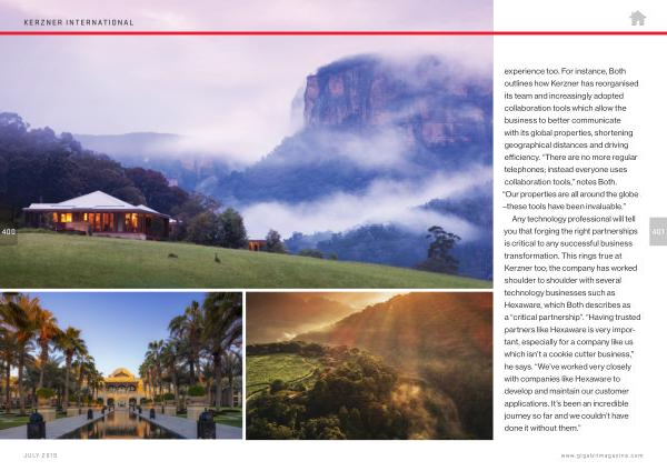 experience too . For instance , Both outlines how Kerzner has reorganised its team and increasingly adopted collaboration tools which allow the business to better communicate with its global properties , shortening geographical distances and driving efficiency . “ There are no more regular telephones ; instead everyone uses collaboration tools ,” notes Both . “ Our properties are all around the globe – these tools have been invaluable .”