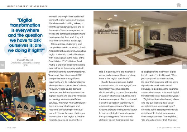 — Waheed Y . Khayyat , CIO of United Cooperative Assurance ( UCA ) were still working in their traditional ways with legacy job roles . However , if businesses did nothing to keep up with these trends worldwide , and in the areas of talent management as well as the continuous education and development of their staff ; they will lose their competitive advantage .”