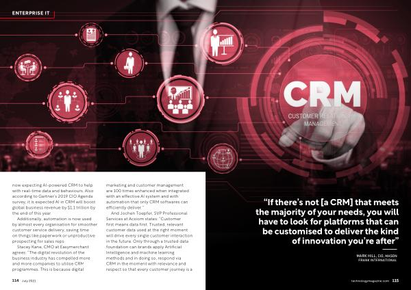 Stacey Kane , CMO at Easymerchant agrees : “ The digital revolution of the business industry has compelled more and more companies to utilise CRM programmes . This is because digital marketing and customer management are 100 times enhanced when integrated with an effective AI system and with automation that only CRM softwares can efficiently deliver .”